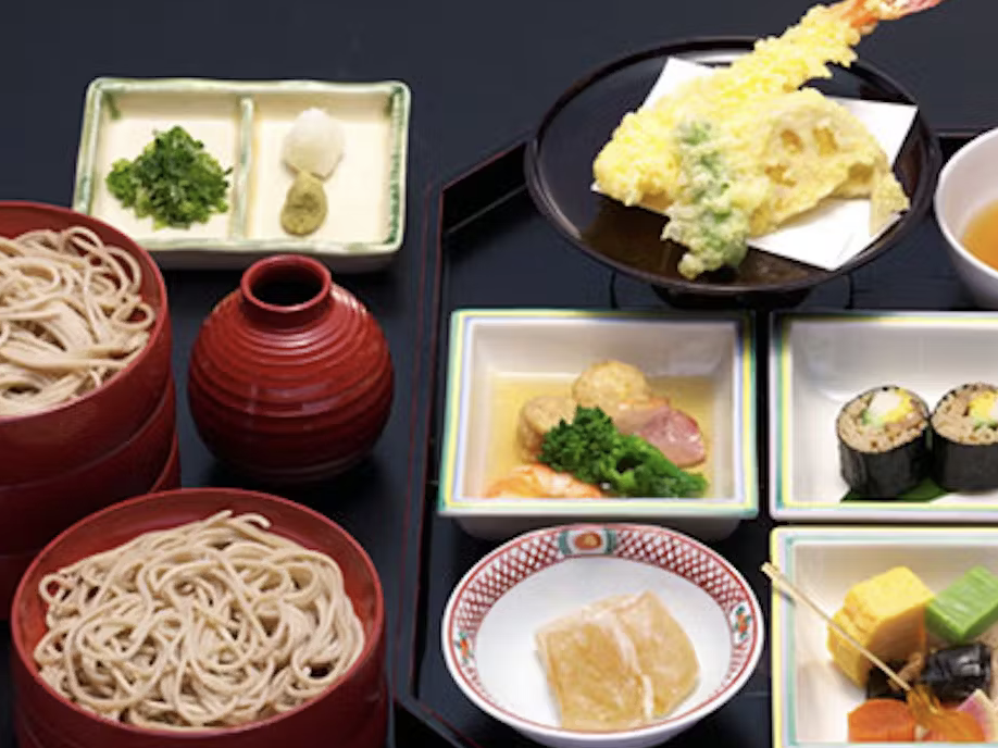 「蕎麦しゃぶ総本家 浪花そば」は、季節の素材を活かした天ぷらやお造りを堪能できる大人気レストランです。